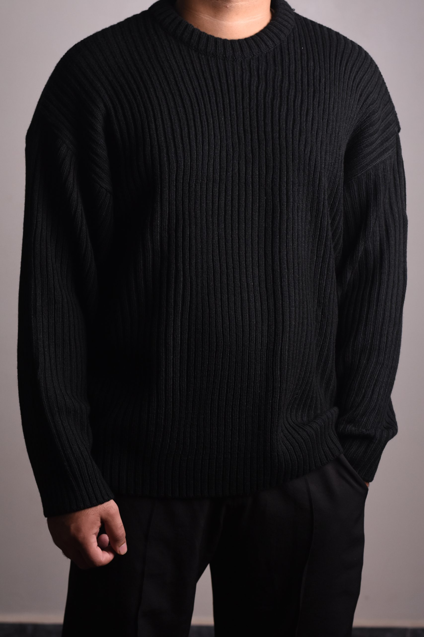 Design details: Oversized rib knit jumper with a classic round neckline, soft textured finish and naturally draped shoulders for an elevated yet effortless look